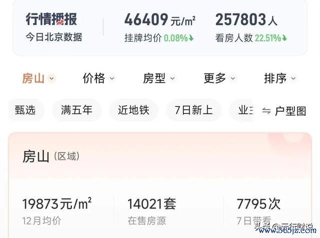 小黄数据显示,2025年12月份,房山挂牌房源均价19873元每平。也就是说创界,房山二手房挂牌价已跌破2万每平。在售房源始终维持在1.4万套以上。
