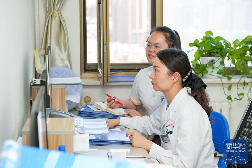 ↑ 在新疆伊犁哈萨克自治州中医医院丰云股票,江苏援疆医生郭云柯(前)与本地医生一同探讨病例(2025年7月6日摄)。新华社记者 徐宏岩 摄