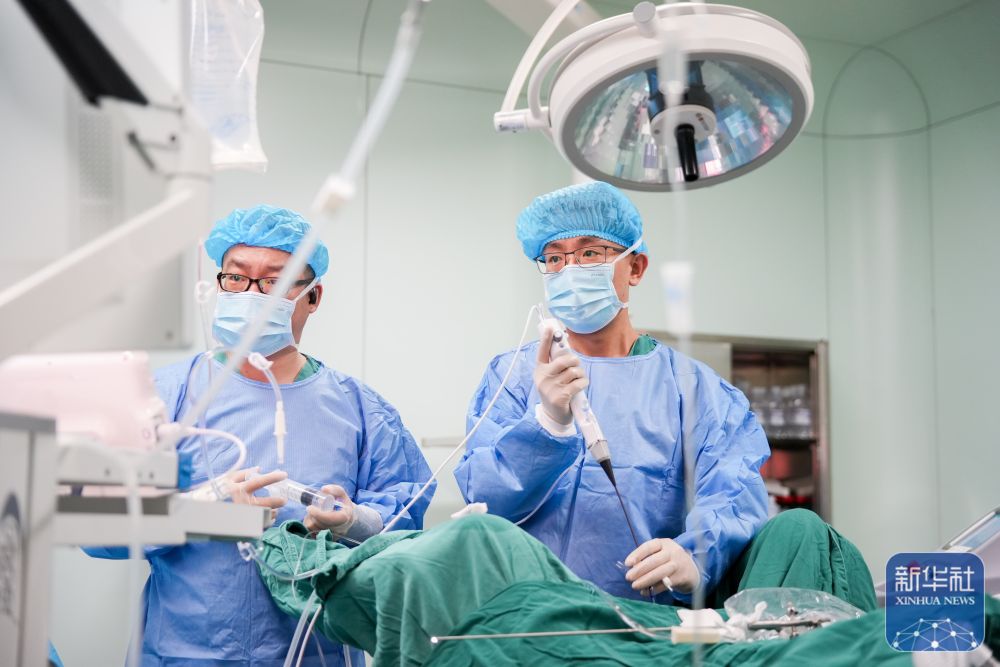 ↑ 在新疆伊犁哈萨克自治州中医医院手术室,江苏援疆医生魏云飞(右)为患者进行手术治疗(2025年7月6日摄)。新华社记者 徐宏岩 摄