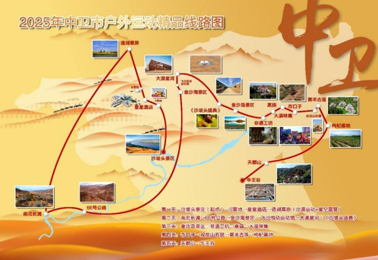宁夏中卫市星星故乡·动感大漠户外运动线路示意图