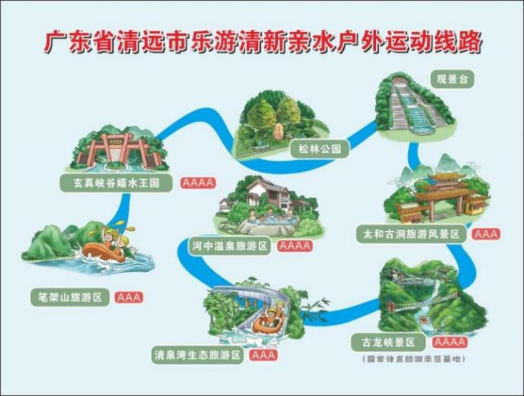 广东省清远市乐游清新亲水户外运动线路示意图