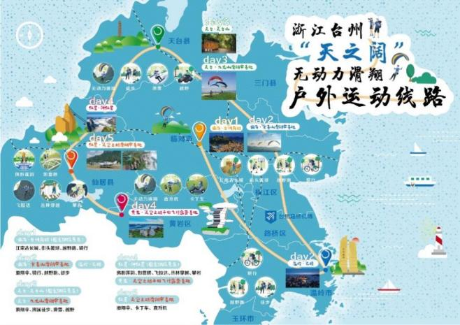 浙江省台州市“天之阔”无动力滑翔户外运动线路示意图