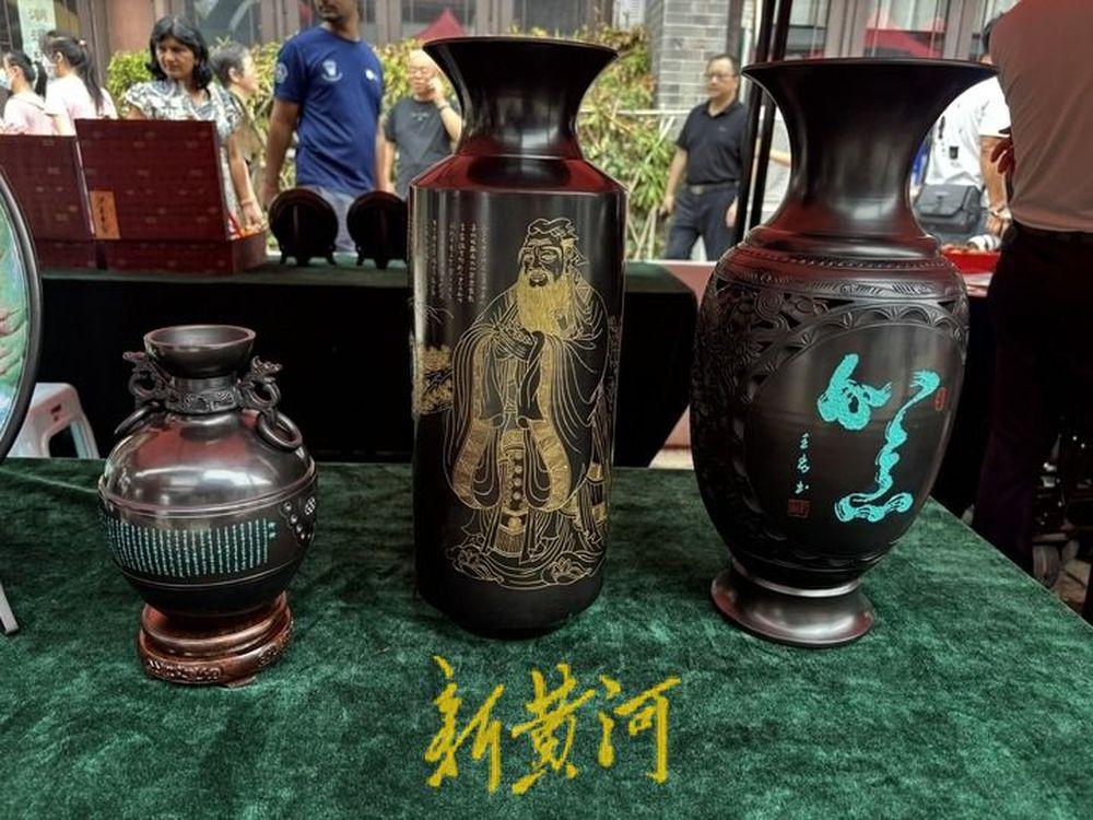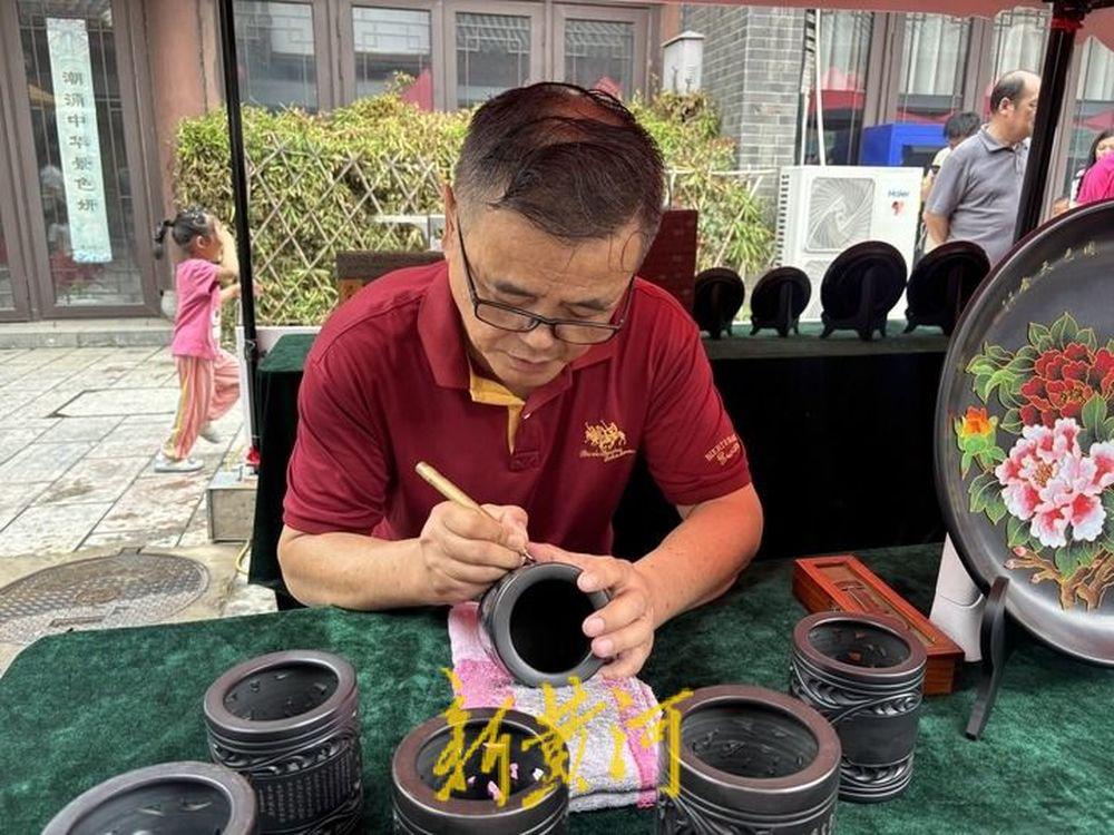 “德州黑陶距今有4000多年历史,现在就是经过我们的一些发掘和技艺提炼,得到迅速崛起,梁子黑陶始创于2002年,距今已有20多年。”非物质文化遗产德州黑陶传承人毛军在大集现场介绍说,黑陶以黑色为主打,现在的黑陶进行了大量创新,出现了掐丝陶、漆陶等等,其中硬刻陶是在烧制好的陶体上再进行硬刻的一种。