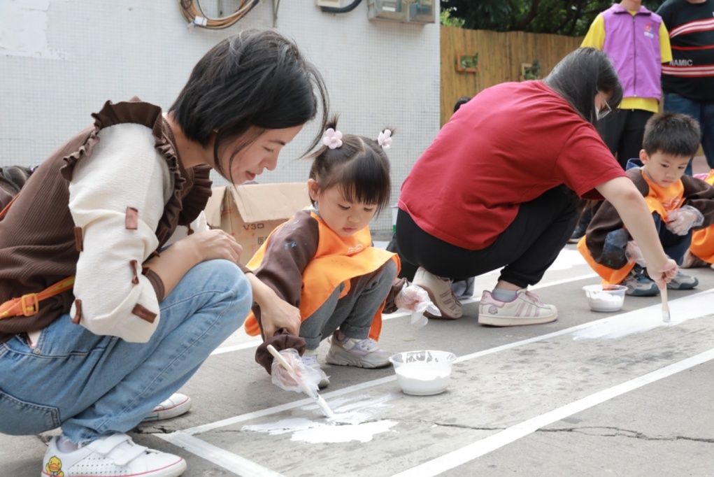 △寒溪水村组织亲子绘制儿童友好斑马线
